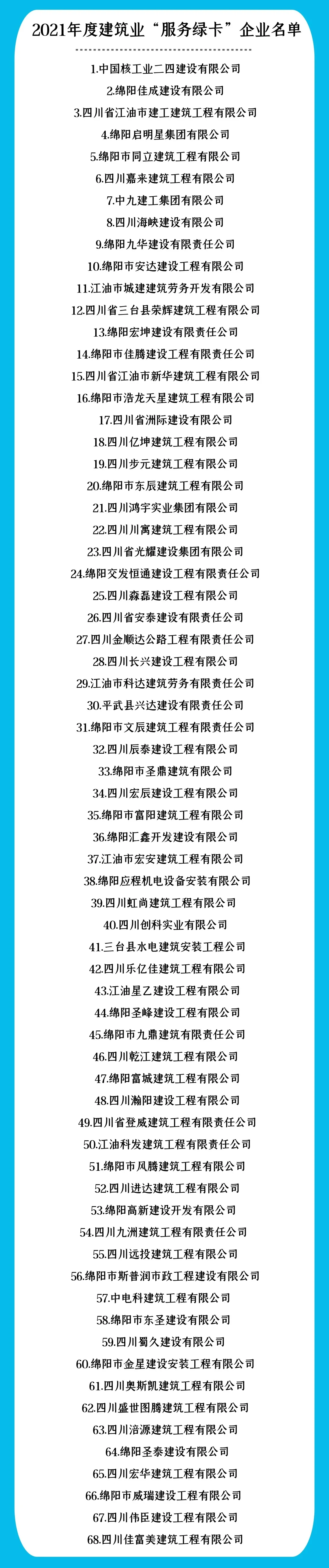 根據(jù)《綿陽市建筑業(yè)及房地產(chǎn)綠卡企業(yè)服務(wù)管理辦法》規(guī)定,“服務(wù)綠卡”企業(yè)實行每年公布一次,有效期為一年。